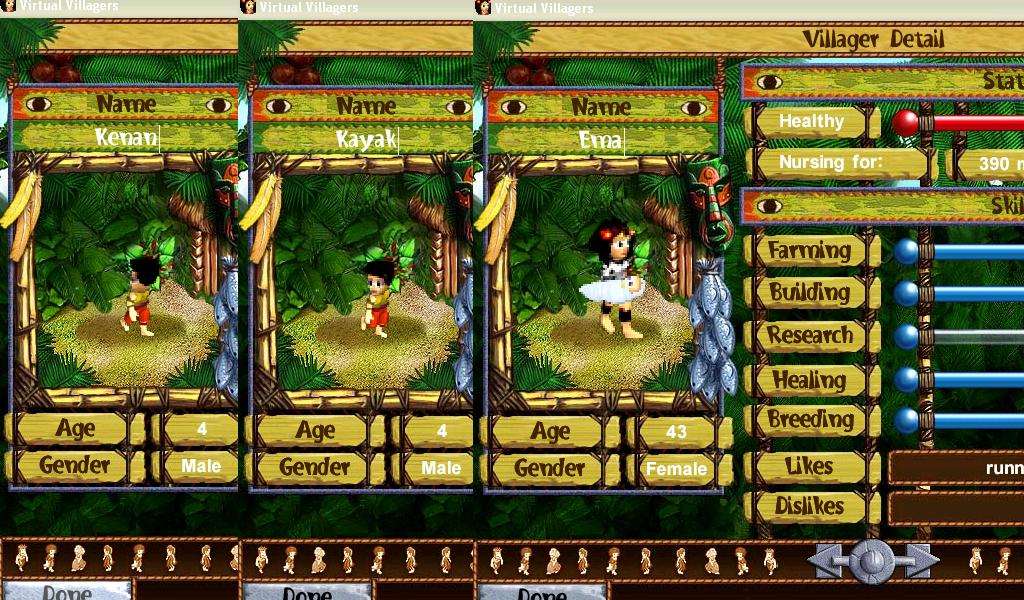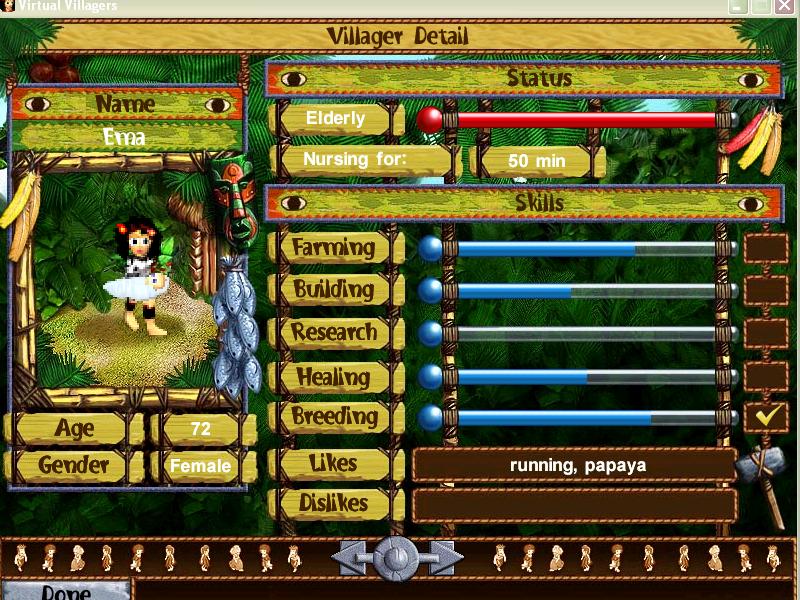 wow your lucky u have alot of runners things must go pretty well in your village. The only runner I had was a man and he died already. Yeah, but, it's pretty useless to have runners at the stage of the game I'm at in the first game. All they do is catch fish really fast, lol. I'm confused though. In the first game I played, my villagers don't reach elderly until 66 years of age, but in my new game, they seem to get old at 58?! Is this normal? This kind of sucks because in my new game, my eldest villager is my runner, and well, I've only got 15 (well, 19 now because my runner is a builder and she FINALLY finished building the second hut) villagers, and so now I've got her working on [SPOILER COMING] Highlight text to read: restoring the ruins[END SPOILER] but I'm just sad that the elderly status is set at such a low age this time around, and I'm afraid she'll die now before she finishes this task I've got her on.