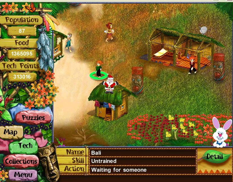 This has led to one of my funnier VV2 moments. Occasionally, I flip on the parenthood skill for one or more of my 50+ women. I tried an experiment to see if I could break the fatal attraction Malo has for my female village population. I had a theory if I kept throwing her at one particular male, she might gravitate to the new male. No such luck. She was approaching the fire from the hut area, dead set on her target. Malo was at the food bin, "waiting for someone". I intercepted her approach with a random male. The two of them gazed at each other as she went inside with the random male. Then in that purposeful walk usually reserved for "embracing", Malo marched over to the totems and started marching back and forth "complaining".