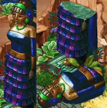 LadyCFII's edit: New requests for statue color schemes are no longer being accepted. Please see Lurkily's post for more details. You can download a zip file containing all of the painted statue files that have been completed as of 6/27/08 by clicking here.Well, you've seen bronze statue, pink statue, orange statue, psychadelic statue . . . well, not that one. Well, here's a painted statue. You thought old statues were supposed to be like the sphinx, colorless and lifeless? Lemme tell ya, the sphinx was painted too, at one point, and so is this statue. This is just a preview so far, because I need advice. Particularly, how do you like the color scheme? My girlfriend says the dress has too much yellow, but she just hates yellow. Also, what color should I recolor the necklace? It looks okay as is, but doesn't fit the color scheme - my girl says red, but I'm worried about over-redding it. I also have to adjust the color layers What about the hair; is the icy-eyed blonde okay? I thought the hair should be black, but . . . I wanted more color here. Let me know what you think! If it sucks, slam me for it - I'm a big boy, I can handle it. P.S.: I know that there's a fringe of yellow outside the lines on the left hip.