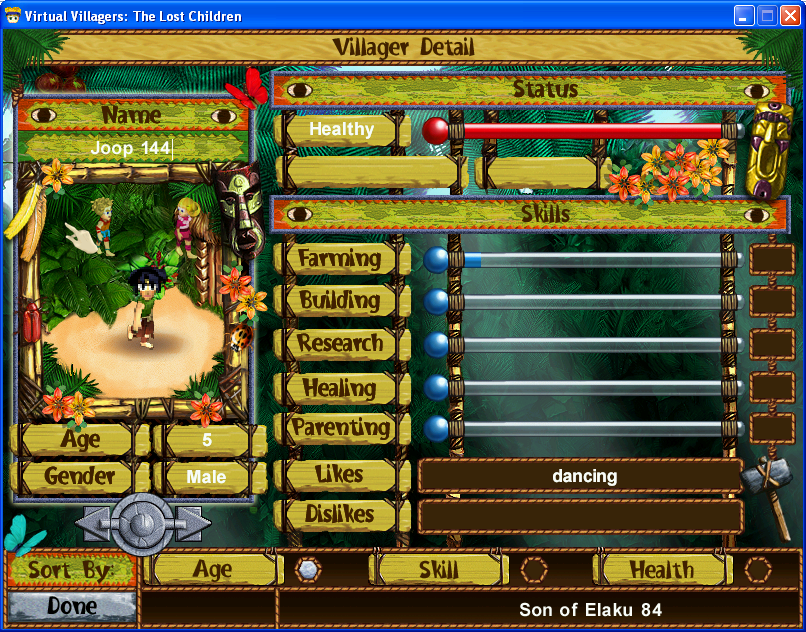 I tried a little experiment... I chose one of my ''rare'' villagers, a male with short,straight yellow (or bright) blonde hair as a parent and mated him exclusively to all of the elegible women in the tribe...this produced lots of babies of course but NONE replicated him! I have played this game for quite some time and this particular villager type seldom pops up in the population. Every other type will eventually replicate itself and quite often I will see the ''same'' villager over and over...it's just curious to me why this one male villager in particular seems to crop up only rarely in my villages at least.