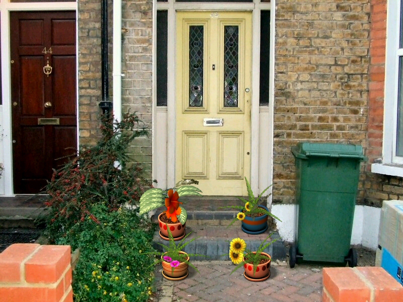We are having some building work done to our house at the moment so it doesn't look very pretty. I thought I'd brighten it up with some flowers, courtesy of Plant Tycoon. Here's the result: