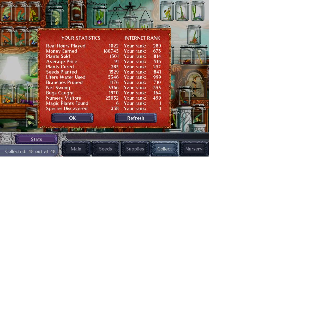Seems odd that the stats for Magic Plants Found, always matches the stats for Species Discovered. One of those bugs must have got loose from the _bug_ storage area.